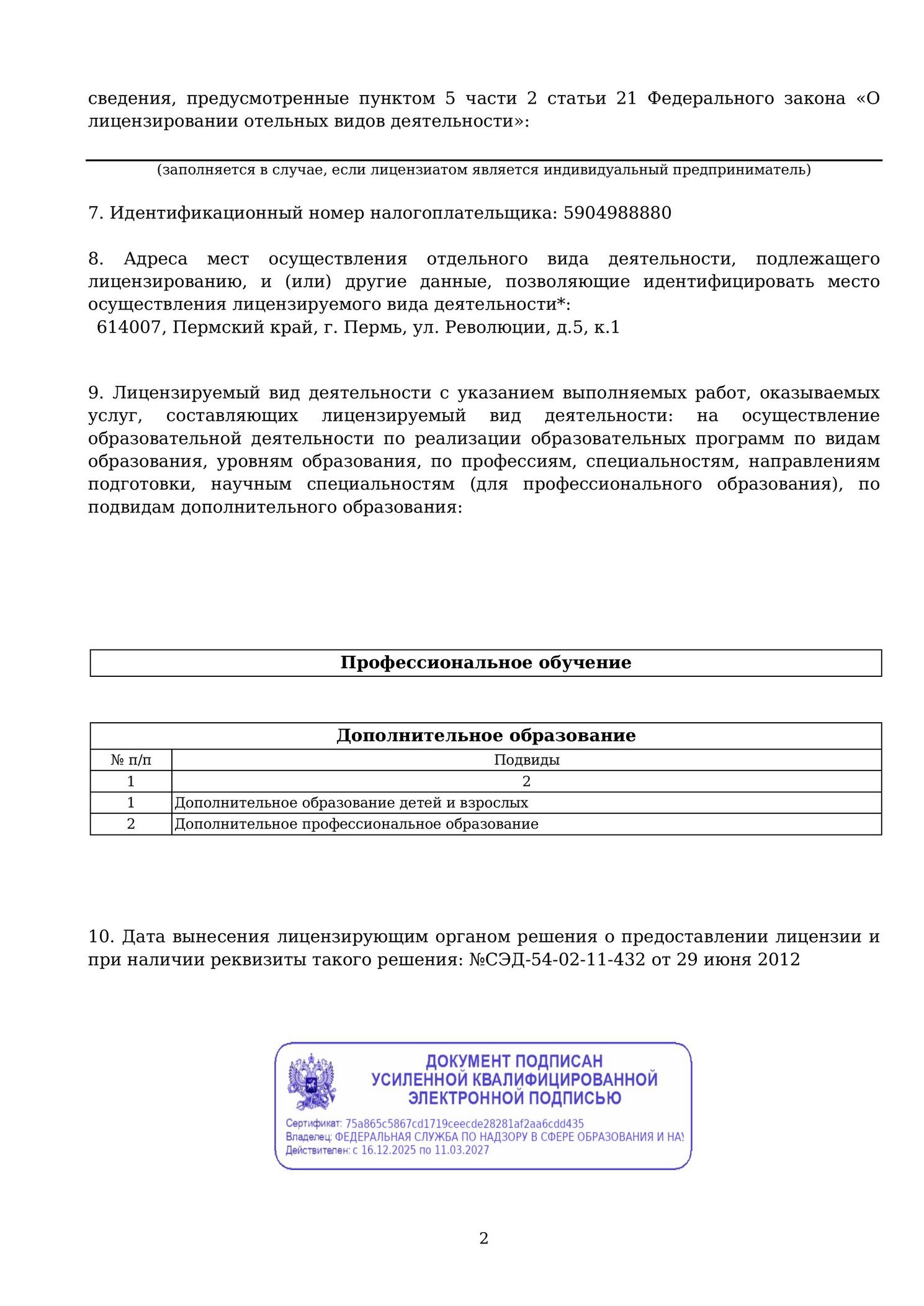 Лицензия на осуществление образовательной деятельности № Л035-01212-59/00386077