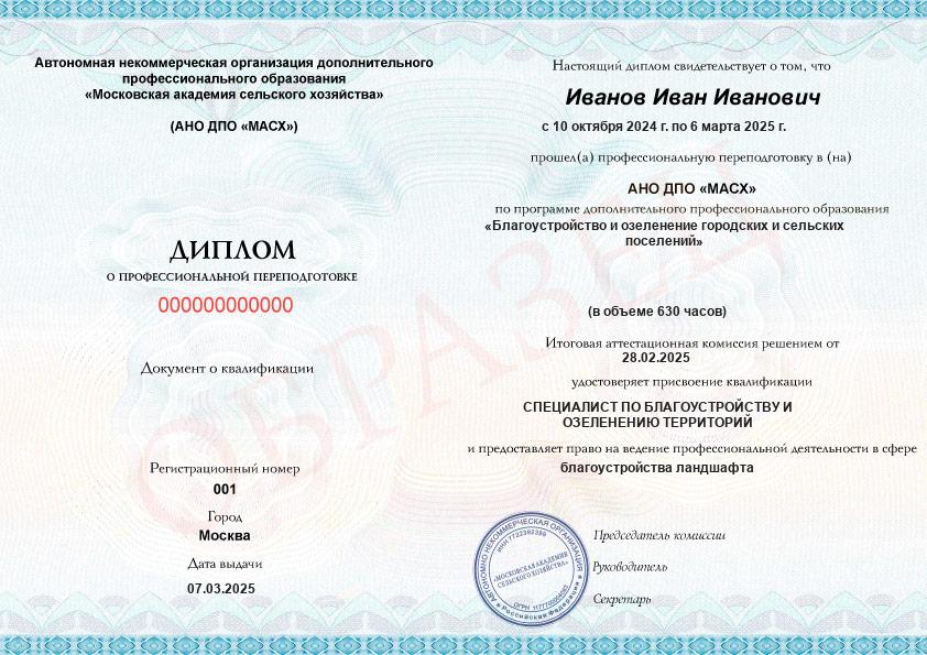 - Образец диплома о профессиональной переподготовке.